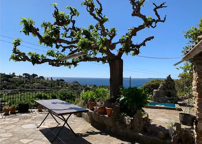 Villa Provencale Avec Vue Mer Panoramique提供配有水上乐园,日光浴 和阳光露台的住宿,位于勒拉旺杜. 它距离带领参观拉约勒园地有2.5公里,距离拉福塞特有5公里.